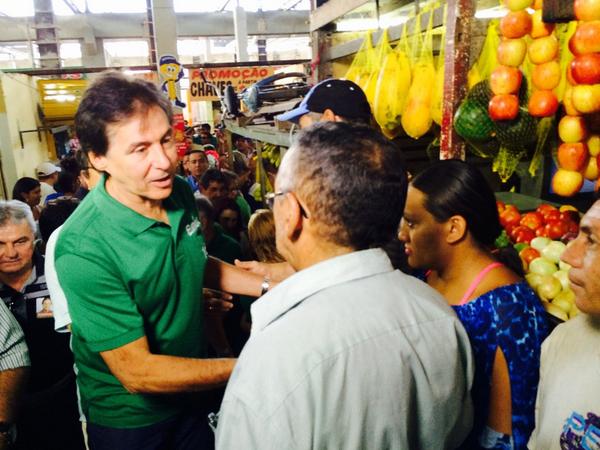 Em visita ao mercado municipal de Caucaia, recebe apoio dos comerciantes da região.