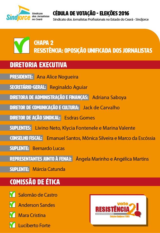 Registro dos locais de votação da eleição do Sindicato dos Jornalistas do Ceará (19, 20 e 21 de julho). #VoteChapa2 #VemPraResistencia