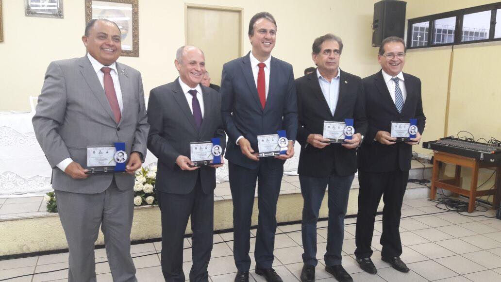 | Desembargadores Teodoro Santos e Gladyson Pontes; governador Camilo Santana, deputado estadual Zezinho Albuquerque e prefeito de Crato, Zé Ailton Brasil receberam a Comenda Hermes Parahyba |