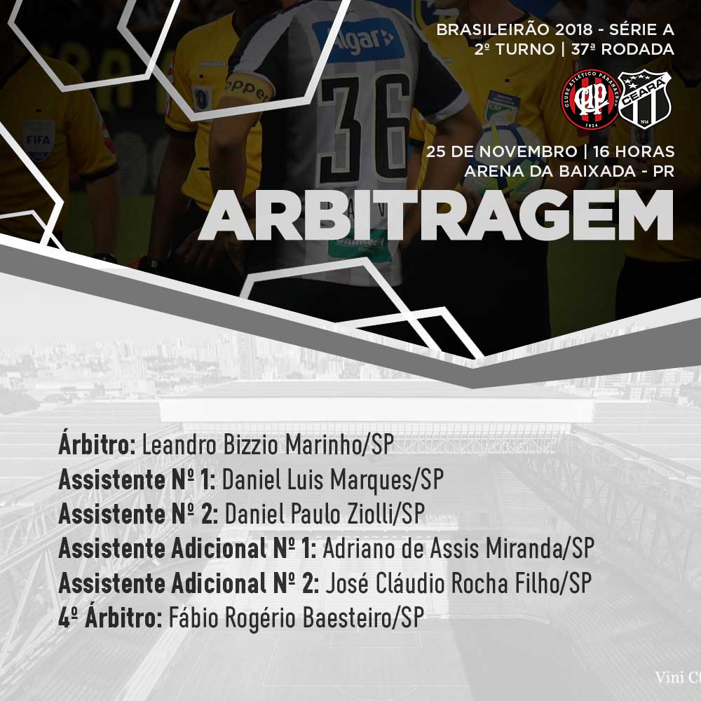 Confira o sexto de arbitragem paulista, que dirige Atlético (PR) x Ceará: