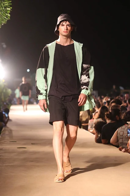 O primeiro dia de desfiles do 20º Dragão Fashion Brasil Festival levou para a passarela a estreante Parko, assinada por Patricia Moraes e Luan Goes, que inaugurou o DFBeachClub, espaço inédito com passarela montada à beira mar, no Aterro da Praia de Iracema, principal cartão postal da capital cearense.