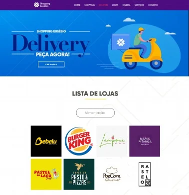 O cliente encontra o hotsite Shopping Eusébio Delivery, acessando as redes sociais oficiais do empreendimento, ou o endereço www.shoppingeusebio.com.brd/delivery. As operações disponíveis estão divididas nos seguintes segmentos: