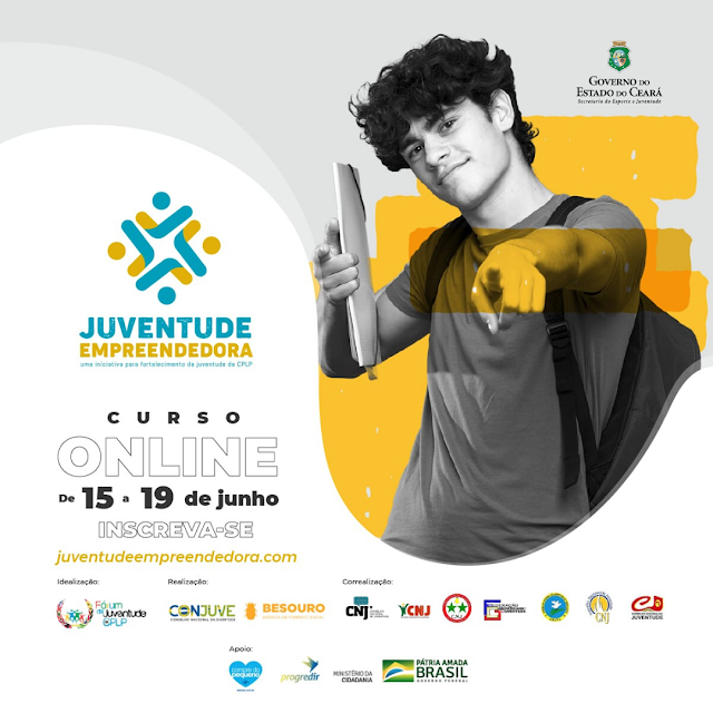 A Secretaria do Esporte e Juventude (Sejuv) divulga, nesta quinta-feira (28), o curso online gratuito, Juventude Empreendedora no Brasil, voltado a jovens de 17 a 29 anos, do Brasil, Cabo Verde, Angola, Guiné-Bissau, Guiné-Equatorial, Moçambique, São Tomé e Príncipe, Portugal e Timor-Leste.