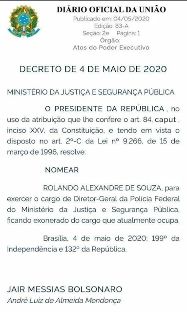 Na última semana, Bolsonaro chegou a anunciar Alexandre Ramagem para o cargo. Porém, antes da cerimônia em que o novo diretor tomaria posse, o ministro do Supremo Tribunal Federal, Alexandre de Moraes barrou, liminarmente, a nomeação.