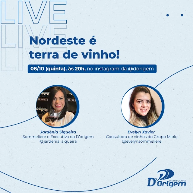 Na Live, as especialistas em harmonização vão provar que o vinho certo cai bem com a boa Culinária Nordestina. Elas vão compartilhar experiências e incentivar o nordestino a experimentar sabores irresistíveis da terrinha, com os rótulos que também são produzidos no Nordeste.