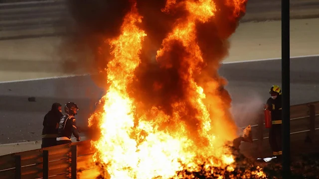 Grosjean ficou cerca de 30 segundos no meio das chamas até conseguir sair andando da célula de sobrevivência do veículo, aparentemente bem, sendo amparado em seguida por um membro da equipe de resgate.
