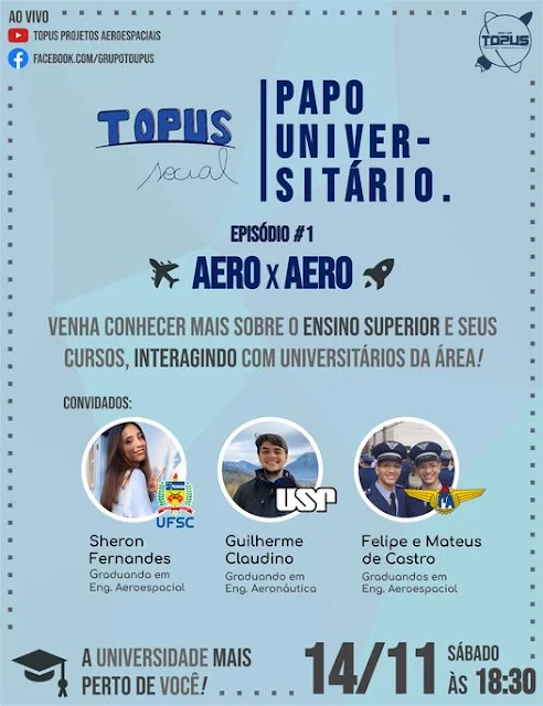 Assista e participe do 1º Episódio desse projeto no dia 14, véspera das eleições, às 18h30 no Facebook ou no YouTube do TOPUS Projetos Aeroespaciais.