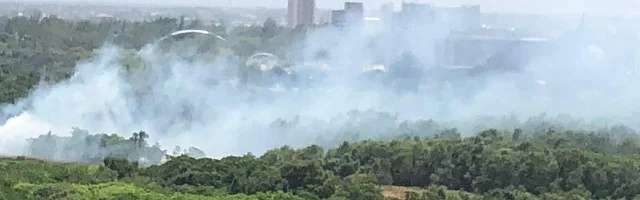 Diário do Nordeste - Um incêndio atinge uma área do Parque do Cocó, em Fortaleza, desde o fim da manhã deste domingo (27). Moradores de bairros vizinhos registraram a fumaça proveniente das chamas.