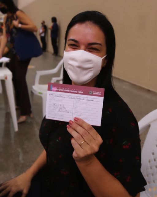 - Mesmo de máscara, fica fácil de ver o sorriso cheio de esperança", disse Nathália Lobo, ex-Diário do Nordeste, ao tomar a vacina e exibir o cartão que recebeu o imunizante.