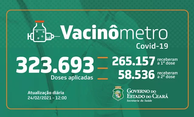 Ao todo o Ceará já aplicou 323.693 doses das Vacinas Contra a Covid.