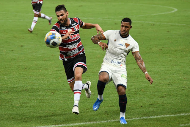 O Santa Cruz (foto Karim Georges), que perdeu os quatro primeiros jogos da Copa do Nordeste, apostou em contra-ataques, mas sem conseguir levar perigo ao time cearense.