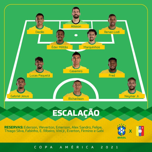 O Brasil abre a Copa América 2021, às seis da noite, deste domingo (13), no Mané Garrincha, contra a Venezuela.