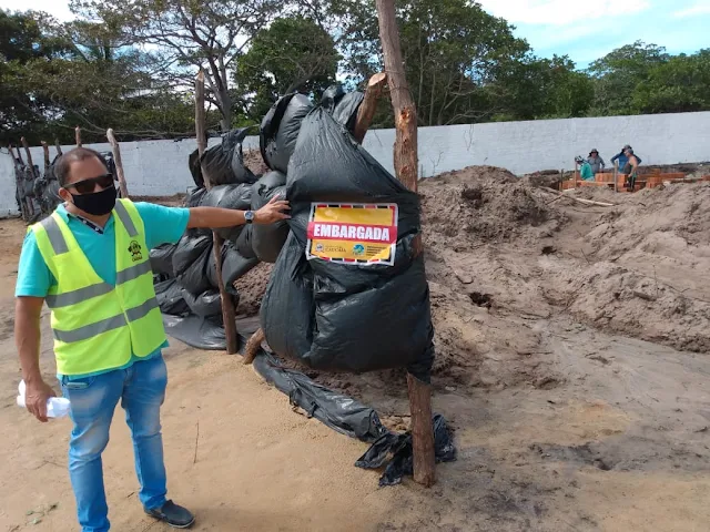 Através de uma denúncia das redes sociais, a Secretaria Municipal de Planejamento Urbano (SEPLAM) e o Instituto de Meio Ambiente de Caucaia (IMAC) realizaram o trabalho de fiscalização e posterior embargo de uma obra na região da Lagoa do Banana. A ação, que contou com o apoio da Polícia Municipal e Militar, ocorreu na tarde desta quarta-feira (9 de junho).