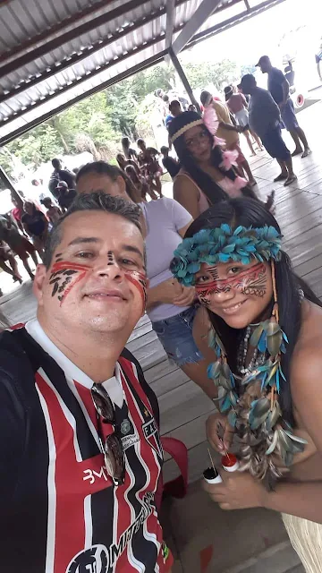 O repórter-narrador Kilmer de Campos, antes de cobrir Manaus-AM 1x1 Ferroviário-CE, pelo Brasileirão 2021 Série C-Grupo A, neste domingo (19 de setembro), no Estádio da Colina, visitou a tribo indígena Tuyuka. Kilmer foi pintado de índio: