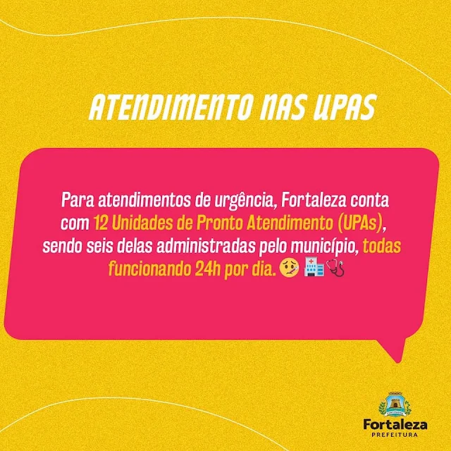 Nesse período, a população também poderá contar com os atendimentos de urgência e emergência das 12 Unidades de Pronto Atendimento (UPAs) da cidade, todas funcionando 24h por dia.