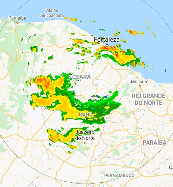 A Fundação Cearense de Meteorologia e Recursos Hídricos (Funceme) aponta chuvas no Litoral e Sertão do Ceará, na manhã desta quinta-feira (27 de janeiro de 2022)