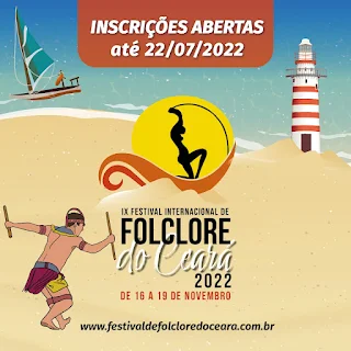 - Inscrições abertas para IX Festival Internacional de Folclore do Ceará até 22 de julho.