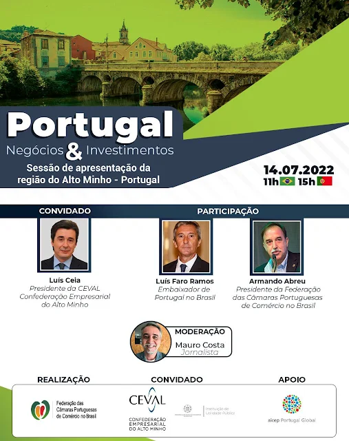 Para participar do Webinar Portugal-Negócios e Investimentos é necessário prévia inscrição por meio do link: https://bit.ly/portugal-neg-invest-altominho. Para mais informações contato@fcpcb.com.br