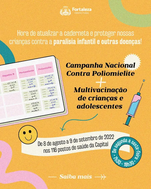 - Papais e responsáveis, não ponham a Saúde da sua filha, de seu filho em risco. A Vacina é a melhor forma de prevenção contra a Paralisia Infantil e tantas outras doenças. A Prefeitura de Fortaleza conta com vocês", destaca Nota da SMS.
