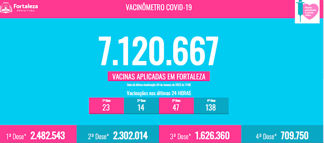 Somente na Capital Cearense, nestes quase dois anos de campanha, foram 7.004.892 doses aplicadas, onde 2.441.413 pessoas receberam a primeira dose, 2.333.639 a segunda, a terceira, e 700.203 a quarta.