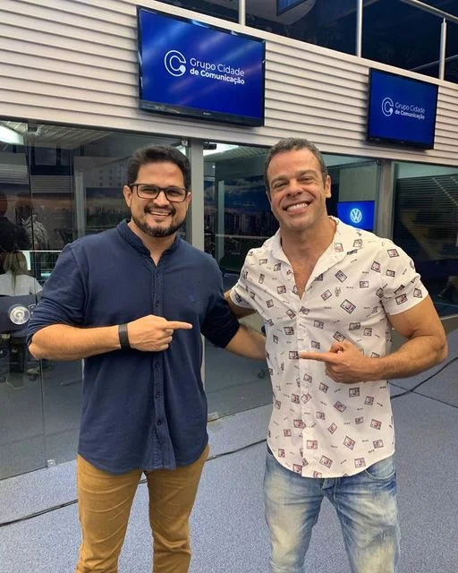 1. Elen Sales-ex-TV União e TV Diário (foto com Evaldo Costa e Márcio Lopes).