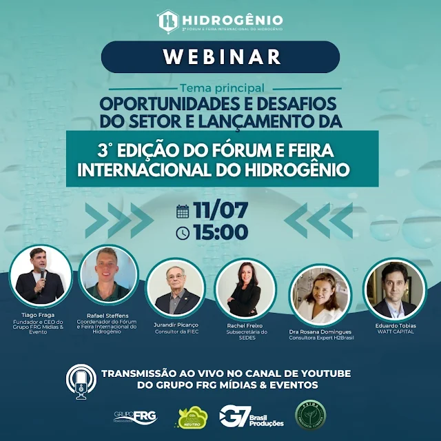 Nesta terça-feira (11), às 15 horas, teremos a Webinar de lançamento Fórum e Feira internacional Hidrogênio 2023 🚀