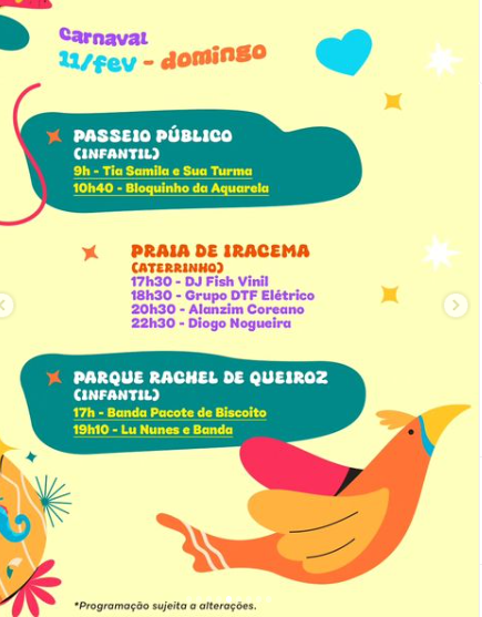 • 9 às 20h30: Carnaval de Fortaleza 2024.