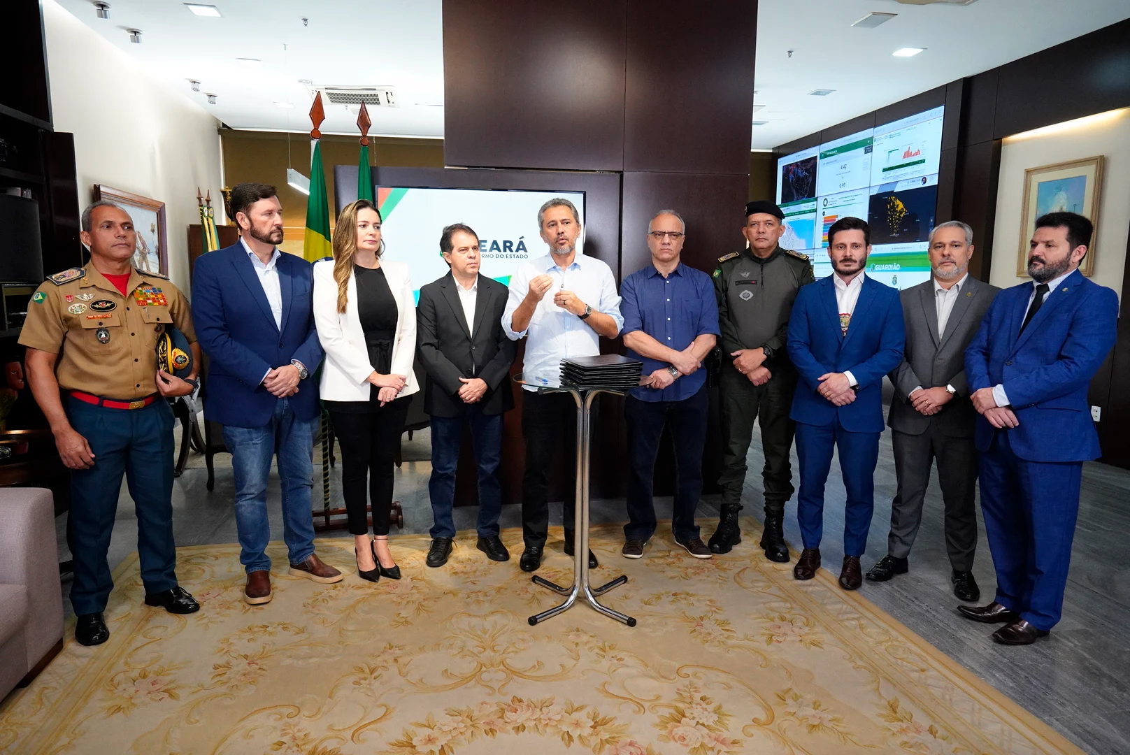 Nesta terça-feira (25/6), o governador Elmano de Freitas enviou à Assembleia Legislativa do Ceará (Alece) um pacote de medidas para reforçar a atuação das Forças de Segurança do Estado no combate à criminalidade. A assinatura das mensagens ocorreu, no Palácio da Abolição, ao lado da cúpula da Segurança Pública; da secretária da Articulação Política, Augusta Brito; do presidente da Alece, Evandro Leitão, Brito; do deputado estadual Romeu Aldigueri;