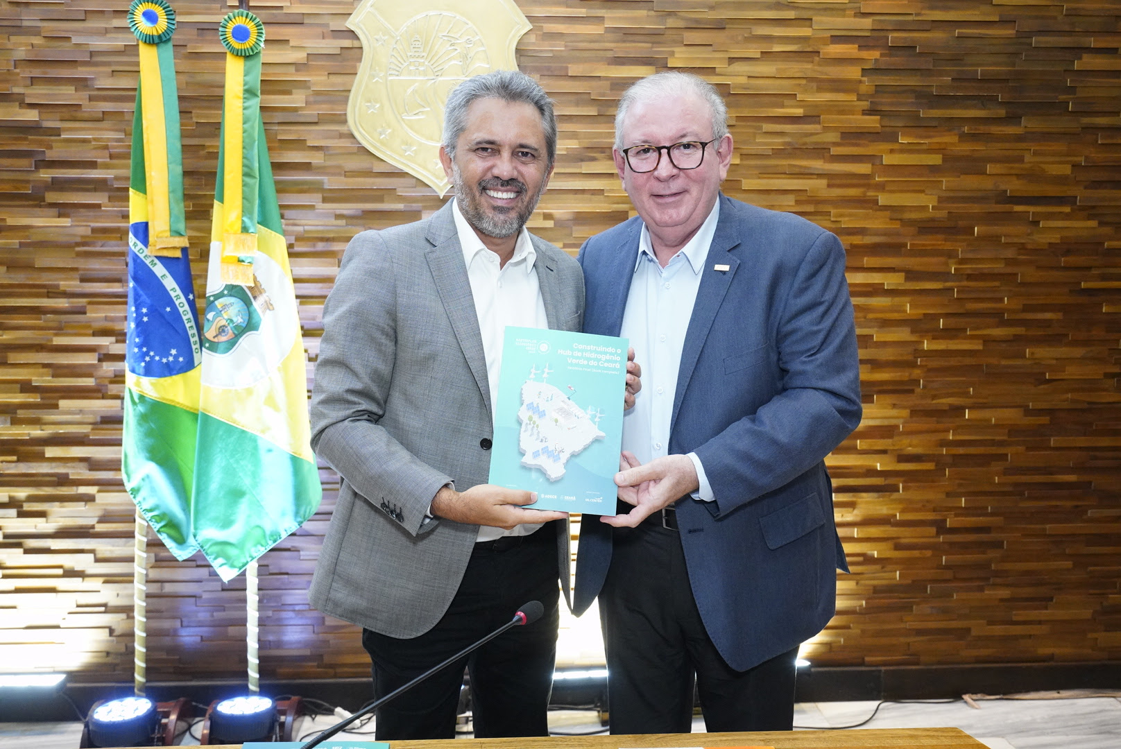 O Governo do Ceará, por meio da Secretaria do Desenvolvimento Econômico (SDE) e da Agência de Desenvolvimento do Estado do Ceará (Adece), em parceria com a Federação das Indústrias do Estado do Ceará (Fiec), apresentou, nesta terça-feira (24), estudo completo sobre o futuro do hidrogênio verde em território cearense. O relatório final, conduzido pelo IXL Center, com metodologia estruturada por profissionais do Instituto Massachusetts de Tecnologia (MIT) e da Universidade de Harvard, foi entregue em reunião comandada pelo governador Elmano de Freitas, no Palácio da Abolição.