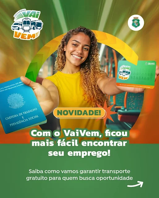 O VaiVem, Programa, que visa garantir passagens gratuitas, de ida e volta, via ônibus, metrô ou transporte alternativo para residentes dos municípios da Região Metropolitana de Fortaleza (RMF), foi ampliado e agora passaa atender também pessoas em busca de emprego.